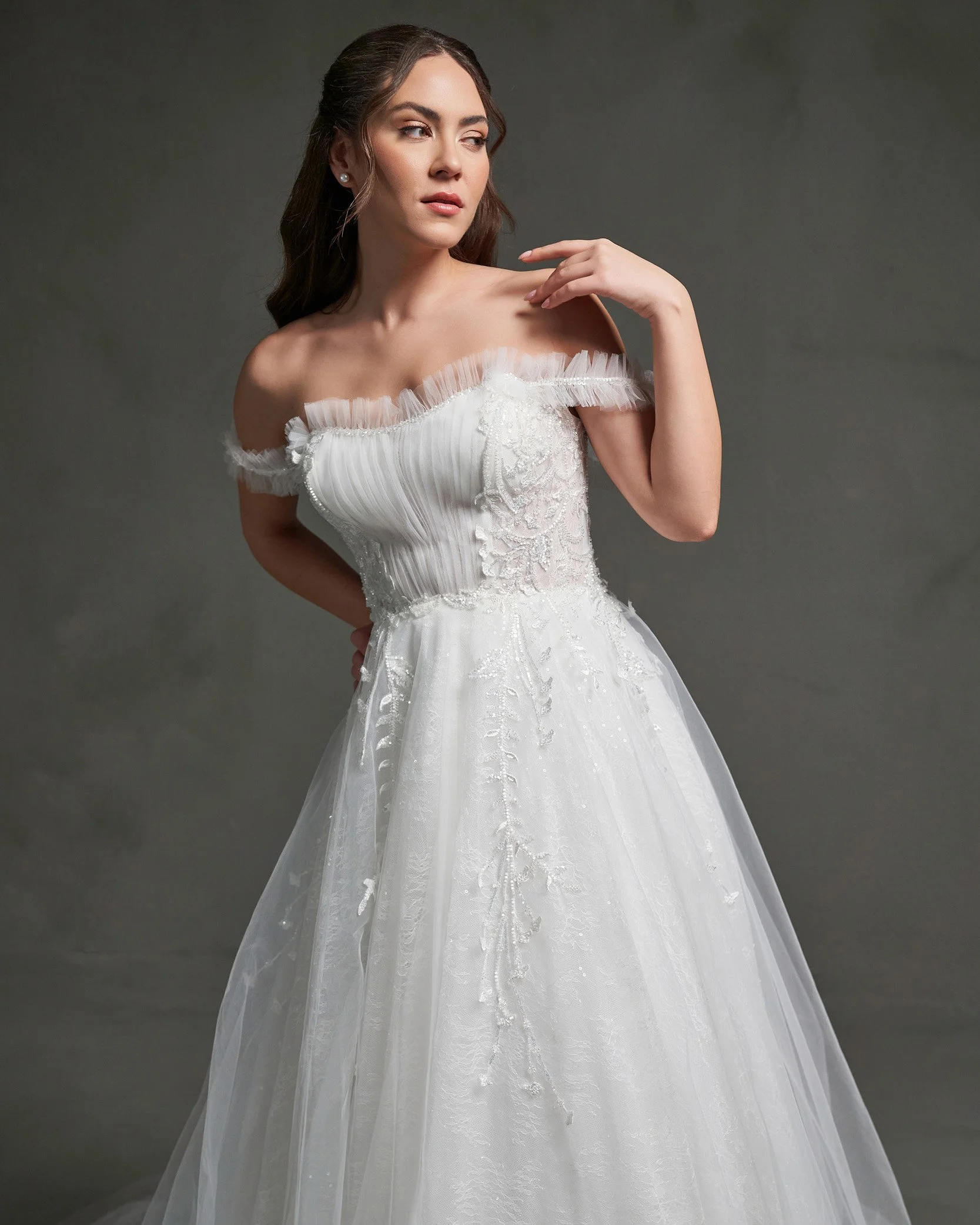 Off-the-Shoulder Design – Soft and romantic for timeless appeal.